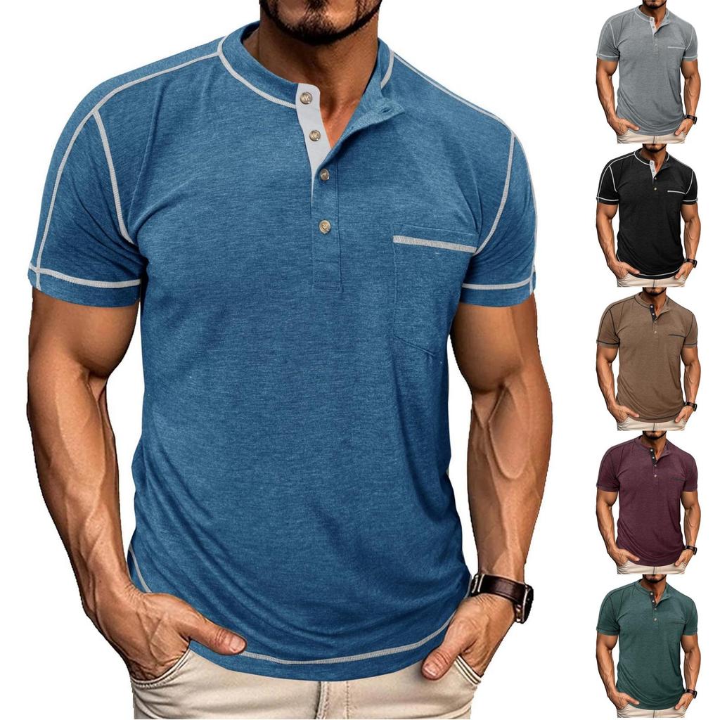 Men's Casual Color-block Sports T-shirt - Men's Round-neck Short-sleeved Top
