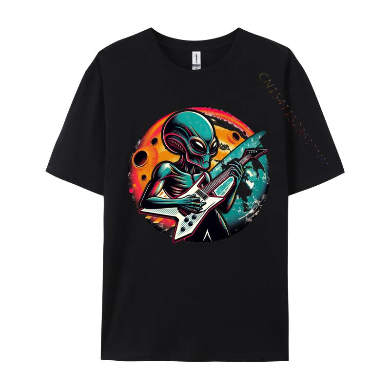 Retro Alien Guitar Rockstar Tshirt Funny T Shirt For Men Premium Cotton Autumn Tshirts Street Tops Shirt