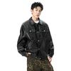 Men's Brown Faux Leather Bomber Jacket - Oversized Casual Streetwear PU Leather Jacket with Pockets