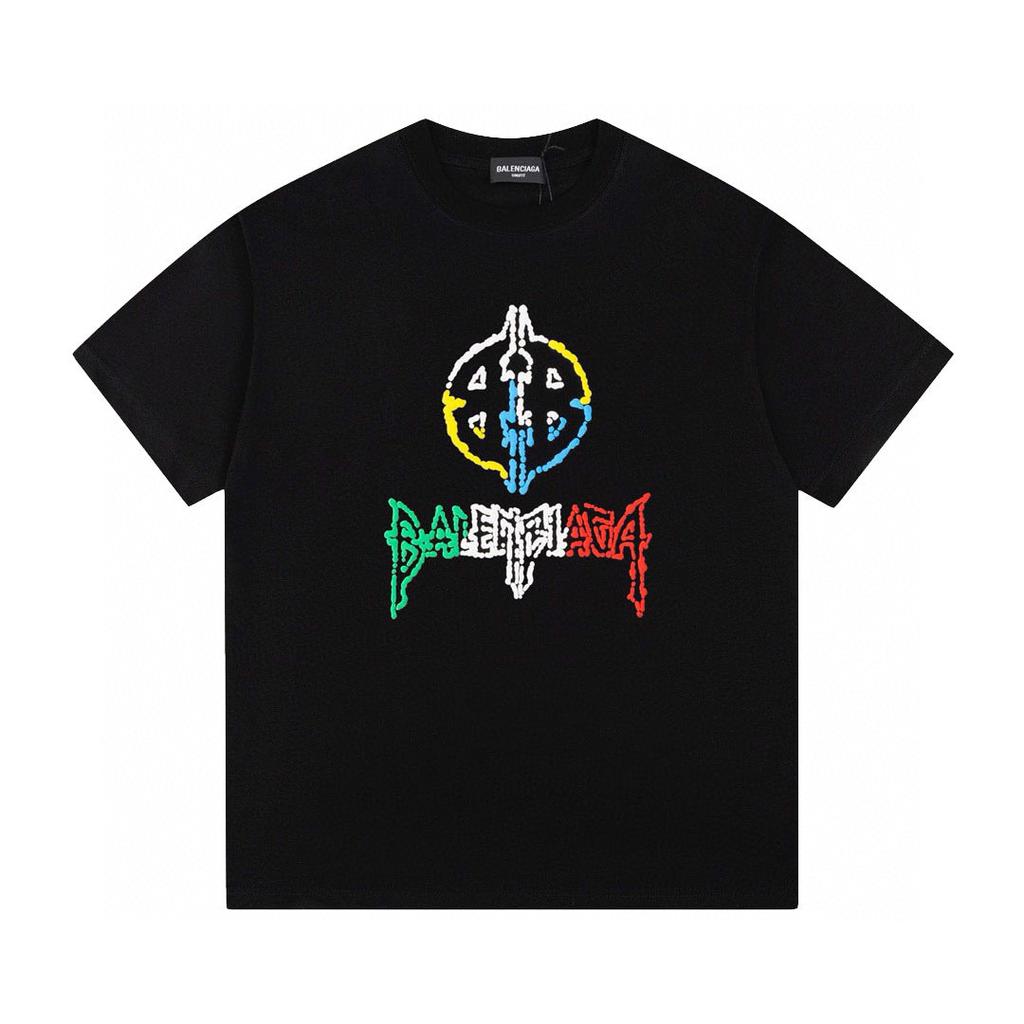 BALENCIAGA Letní Novinka Bavlněné Tištěné Tričko s Kulatým Výstřihem a Krátkým Rukávem Černé F157