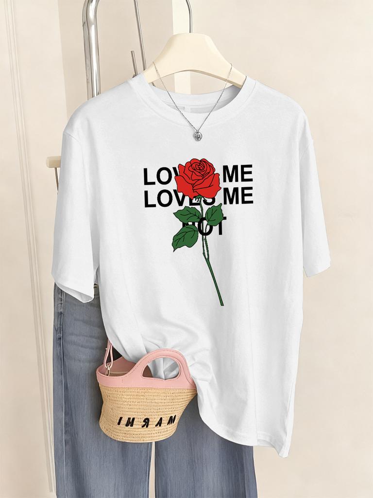 Loved Me Rose Flower Printed TShirts Women Casual ONeck Short Sleeve Tops Comfortable Loose T Shirt Summer Soft Womans Clothes