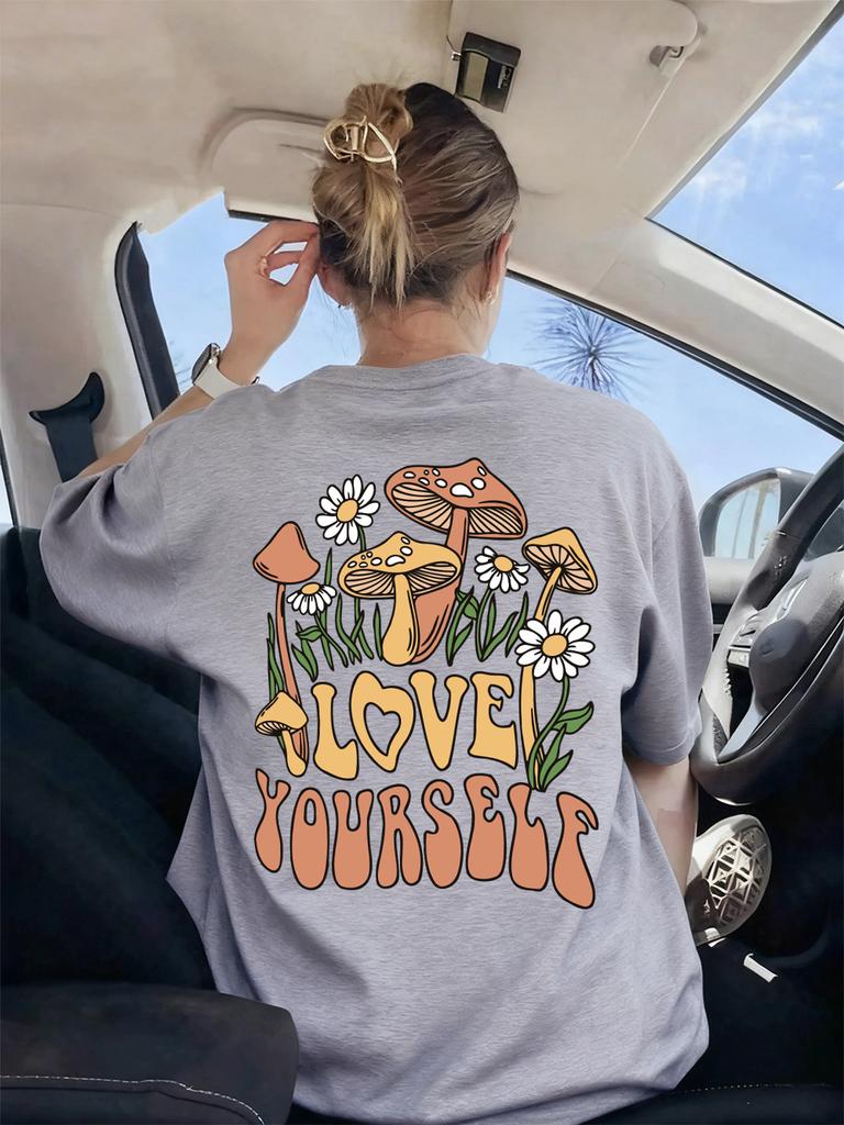 Love Yourself Mushrooms Flowers Prints TShirts Womens Summer Soft T Shirts Loose ONeck Tops Casual AllMatch Woman Clothes