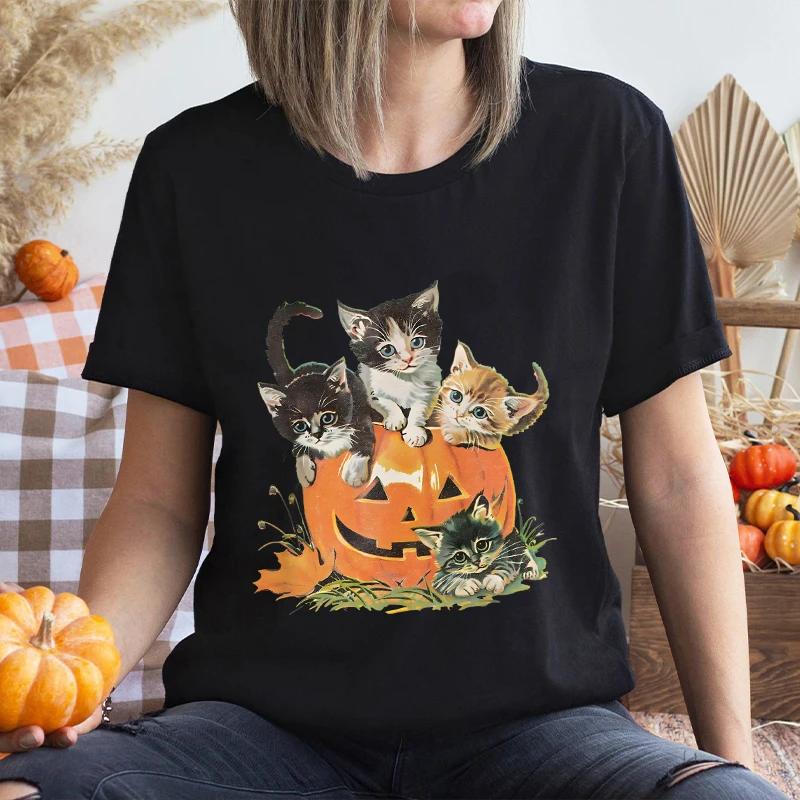 Fashion Halloween Party Tee Shirt Women Clothing Harajuku Designer Cat Pumpkin Halloween Graphic Y2k Tops Short Sleeve Tshirt