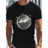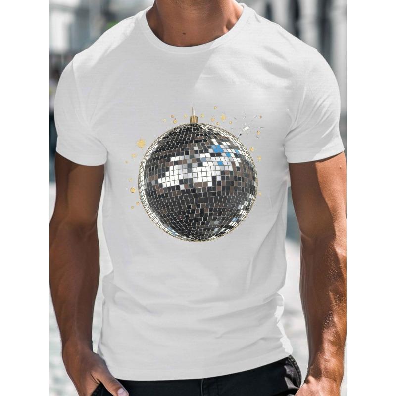 Plus Size Men's Summer T-shirt, Detailed Disco Ball Illustration Graphic Print Short Sleeve Tees Trend Casual Tops for Daily Life, PLUS SIZE
