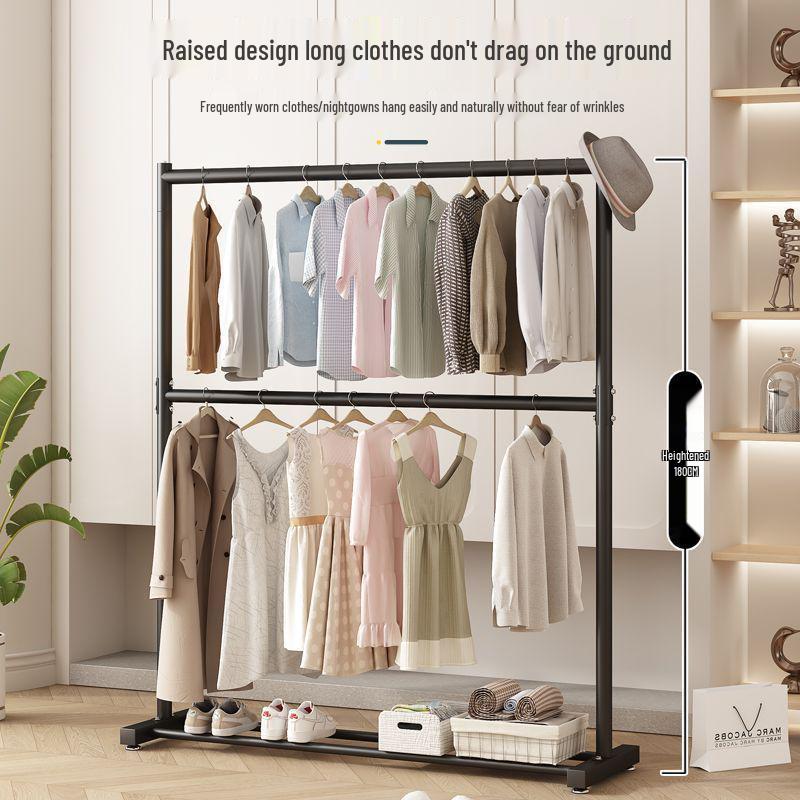 Double Layer Floor Standing Clothes Rack for Bedroom and Balcony