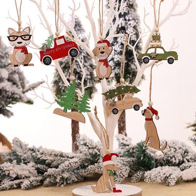 Country Wooden Christmas Tree Animal Car Hanging Ornament Home Decor Gift Accessory Carved Wood Slice