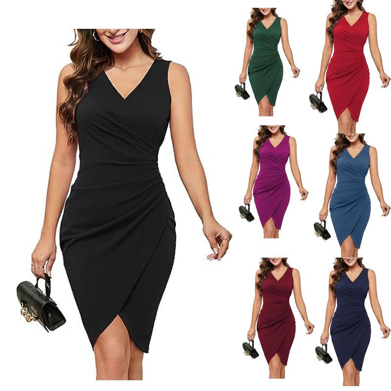 Tyto Dámské šaty 2023 s véčkovým výstřihem, bez rukávů, s falešným zavinováním, plisované, přiléhavé, jsou vyrobeny z vysoce kvalitního polyesteru a nabízejí pohodlný a lichotivý střih.. Šaty mají stylový falešný zavinovací design, zvýrazněný elegantními záhyby, které podtrhují jejich přiléhavou siluetu.. Výstřih do V dodává nádech sofistikovanosti, díky čemuž je ideální jak pro běžné nošení, tak pro zvláštní příležitosti.. Díky svému střihu bez rukávů jsou tyto šaty ideální do teplejšího počasí a představují elegantní a univerzální doplněk každého šatníku.