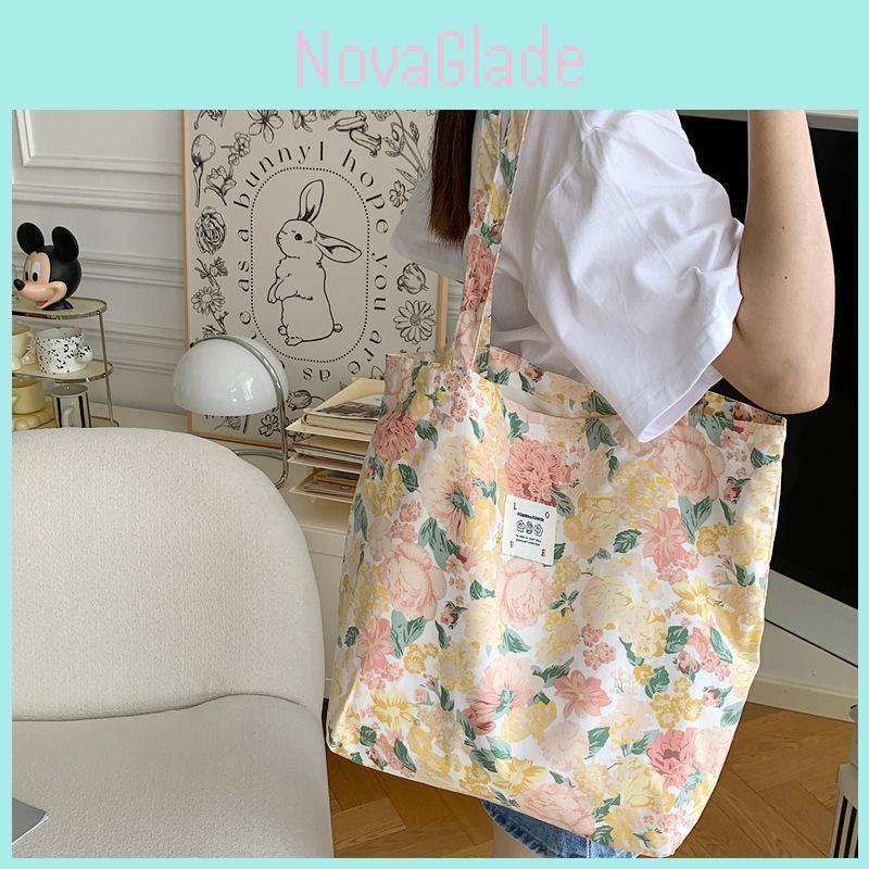 Stylish Floral Cotton Tote Bag For Women With Large Capacity And Soft Canvas Material