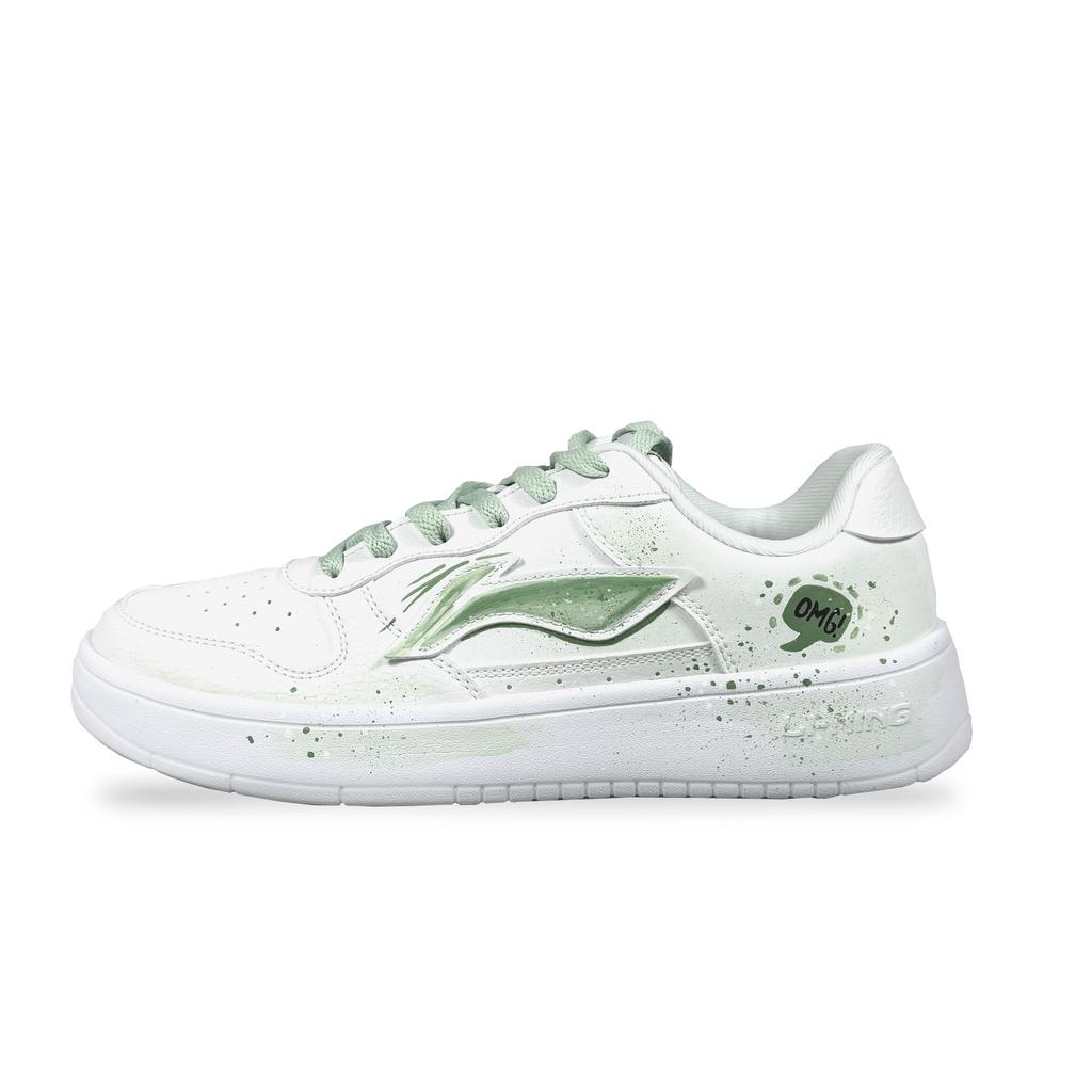 Li Ning Cushioning Abrasion Resistant Breathable Low top Skateboard Shoes Women's White Green AGCS420-6(Team667-OMG)