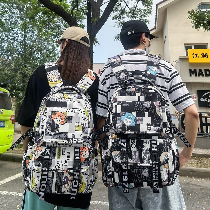 New fashion student schoolbag animation printing trend fashion backpack men and women large capacity simple graffiti backpack