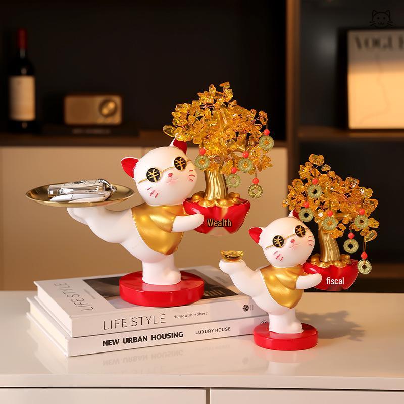 Lucky Cat Crystal Wealth Tree Ornament - High-End Housewarming Gift.