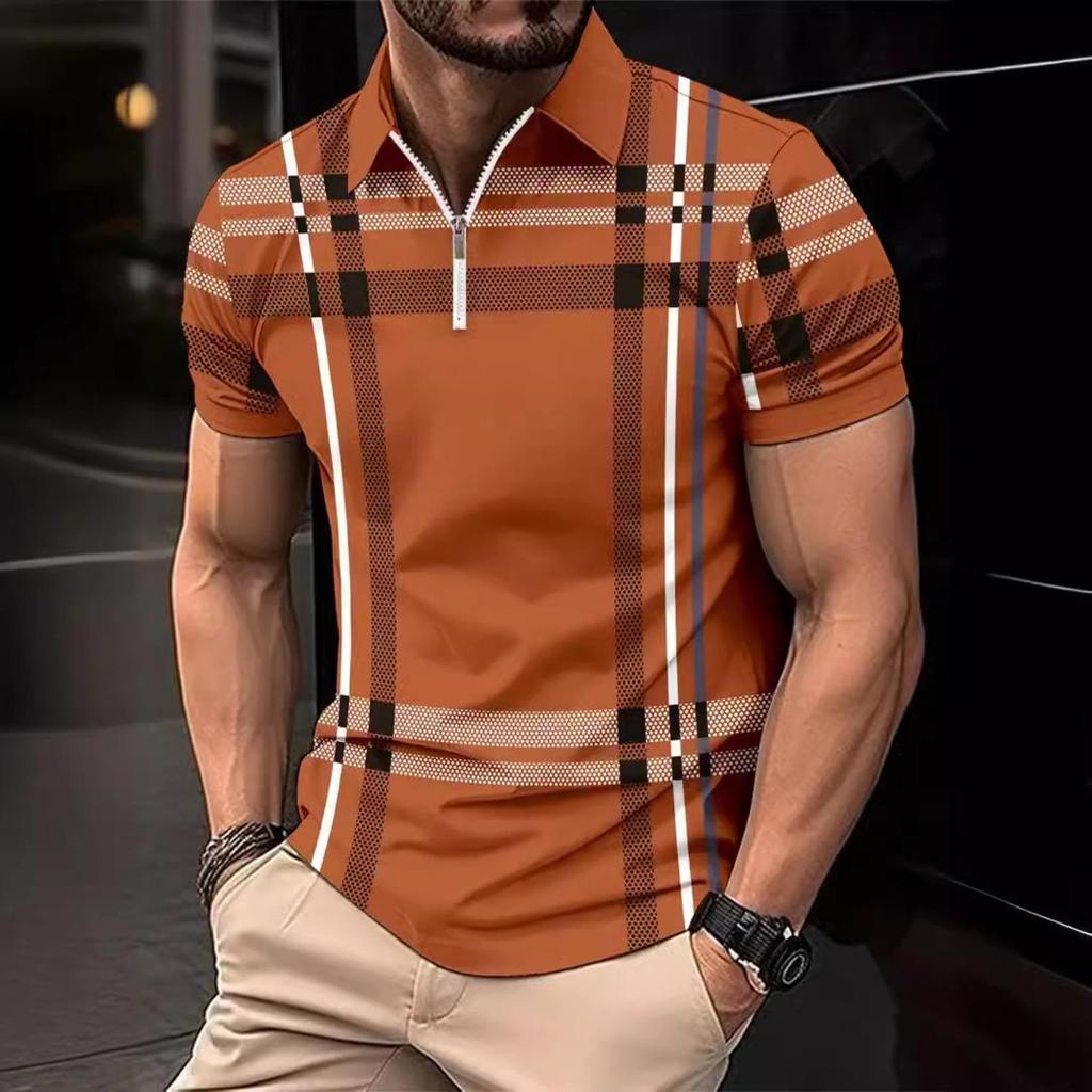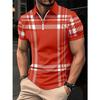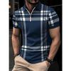 Letní kostkované tričko s krátkým rukávem Pánská ležérní polokošile s klopou