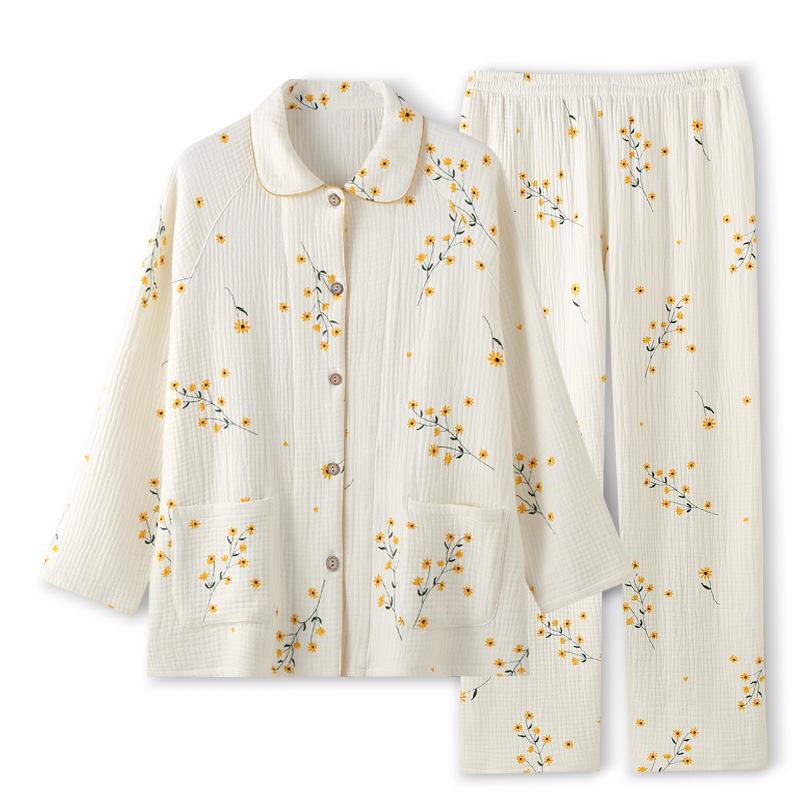 Experience unparalleled comfort with this four-layer pure cotton gauze homewear set, designed especially for women seeking cozy elegance during the colder months. Crafted with high-quality cotton gauze, the set ensures breathability and warmth while maintaining a lightweight feel. The long sleeves provide additional coverage, making it perfect for relaxing indoors during chilly winter days. Ideal for lounging or sleepwear, this set offers a luxurious blend of style and snugness.