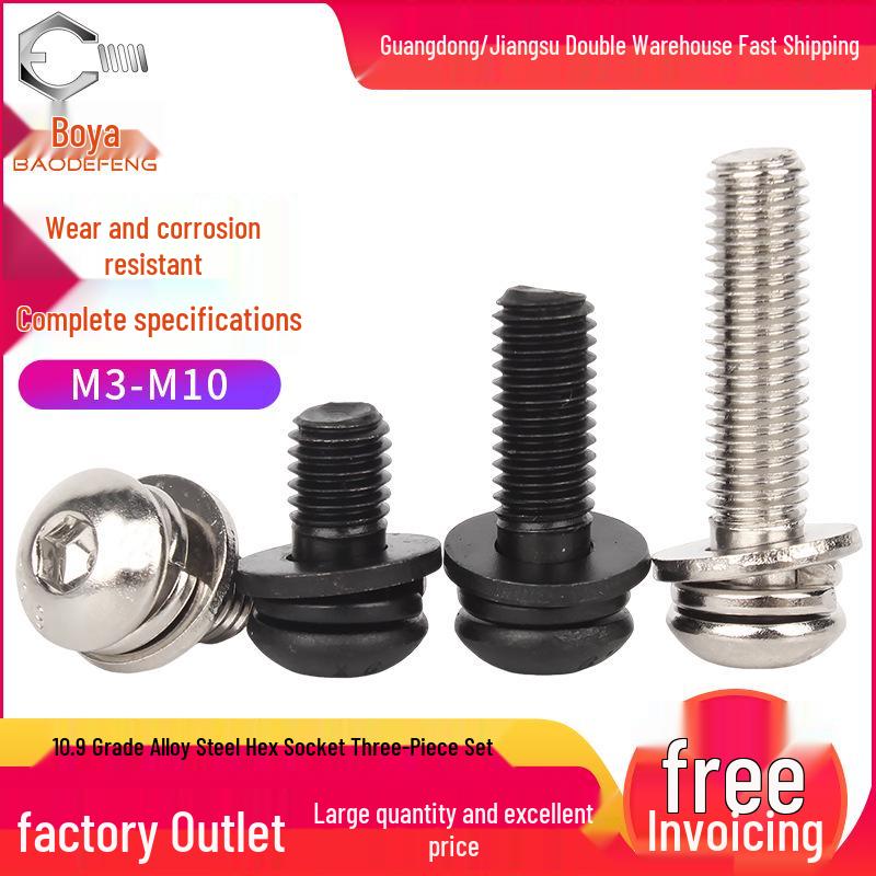 Grade 10.9 Black Iron Bolts with Integrated Spring Washer, Pan/Mushroom Head Combo.