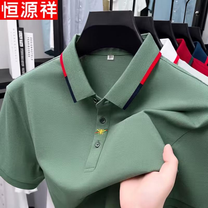 Hengyuanxiang Men's Embroidered Lapel Polo Shirt