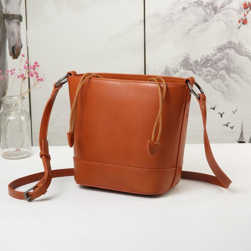 First layer vegetable tanned oil wax cowhide portable women's bag new fashionable large-capacity textured shoulder crossbody bucket bag
