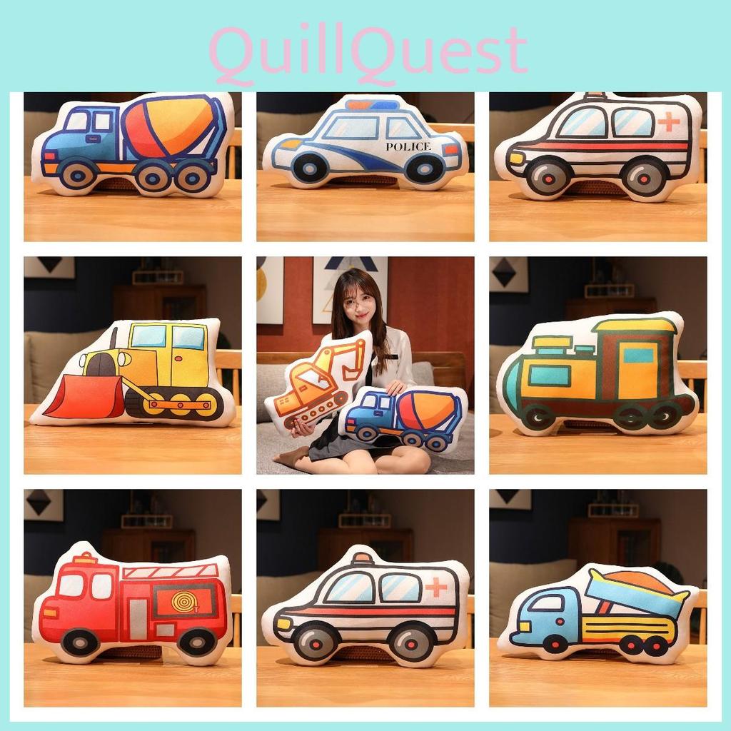 Roztomilý kreslený polštářek ve tvaru auta plyšová hračka pro děti Včetně hasičských aut a policejních aut