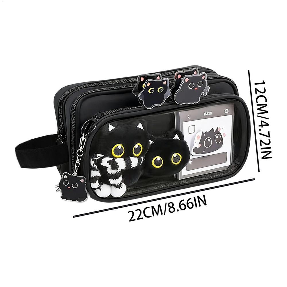 Roztomilé pouzdro na tužky Černá kočka 10vrstvý odnímatelný organizér Zvířecí pouzdro na tužky Školní potřeby pro fixy Školní potřeby pro děti
