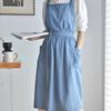 Women Simple Apron Denim Apron Cotton and Linen Solid Color Blouse Kitchen Florist Coffee Shop Apron