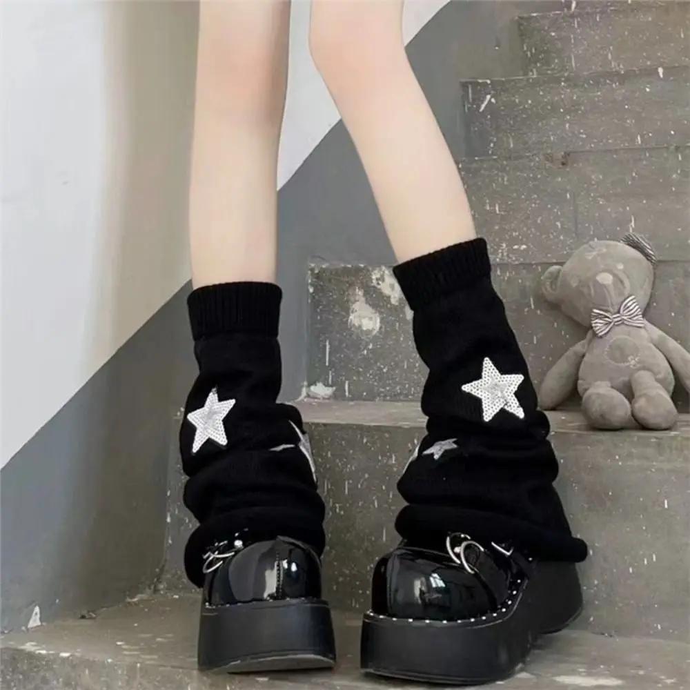 Black White Grey Star Knitted Leg Warmers Winter Warm Cotton Thigh High Stockings Elastic Warm Thigh Knitted Boot Stockings