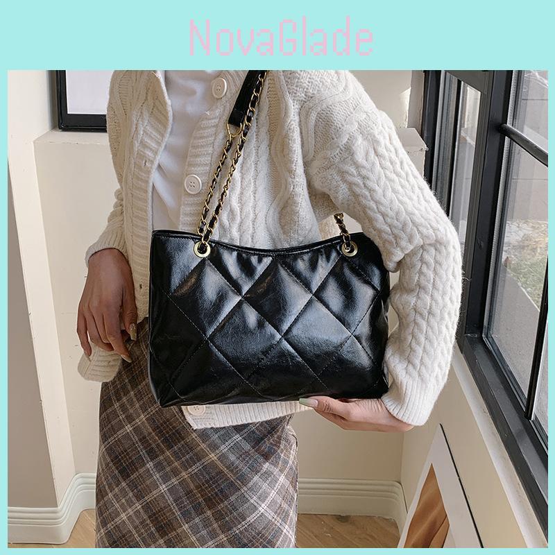 2023 Winter New Women's Bag Fashion Street Trend Shoulder Bag Retro Casual Crossbody Bag Rhombic Chain Tote Bag In Black