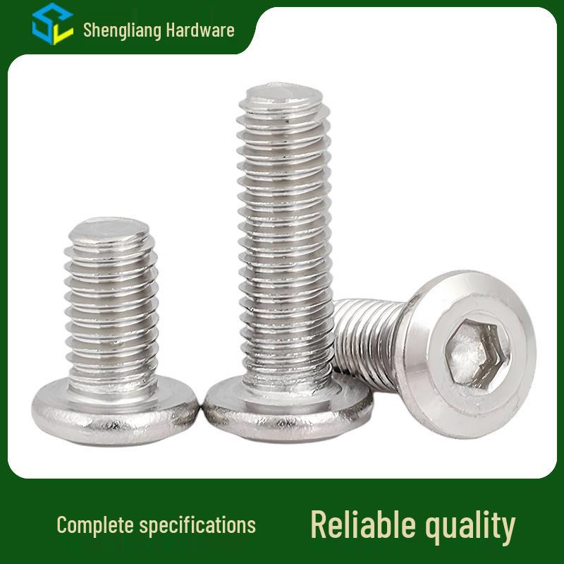 304 Stainless Steel Chamfered Hex Socket Screw with Large Flat and Round Head, Beveled Edge, Sizes M2-M6.