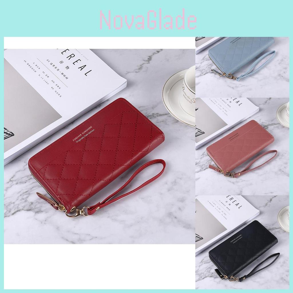 New Korean Style Lady Long Zipper Wallet Solid Color Simple Diamond Card Holder Large Capacity Hand Clutch Bag