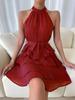Women's Summer Tie-Up Hanger Dress Patchwork Sleeveless Ruffled Hem Dress
