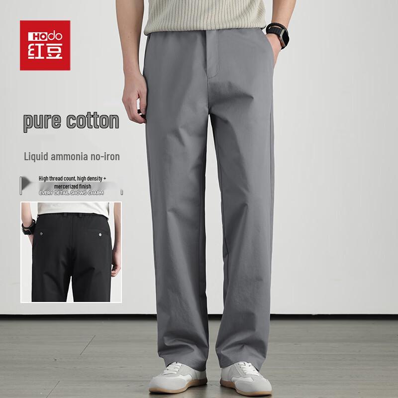 Red Bean Men's Wrinkle-Free Pure Cotton Straight-Leg Casual Pants