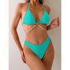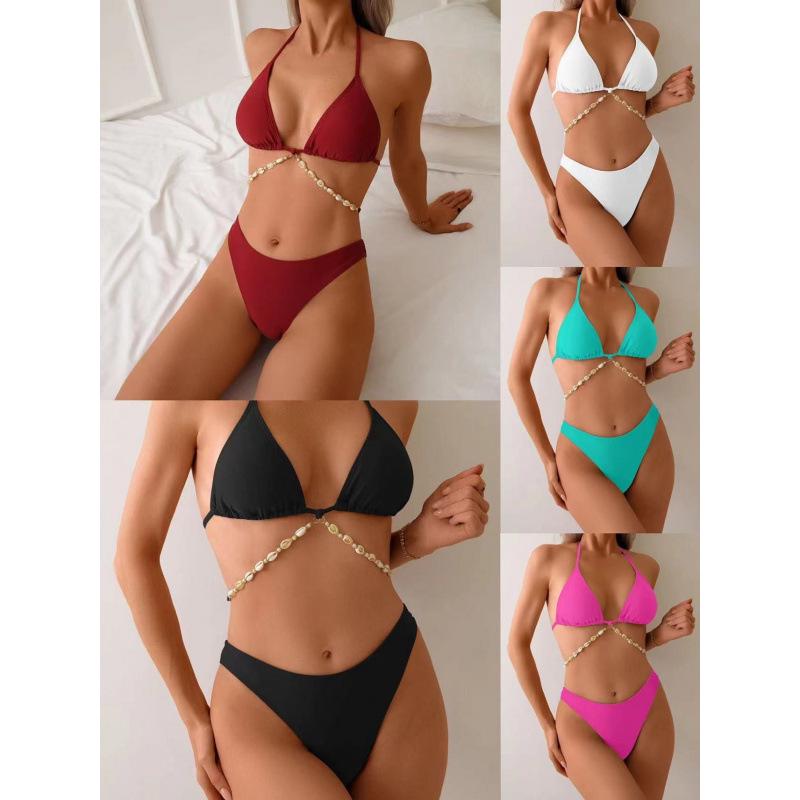 European & American Shell Chain Solid Color Split Swimsuit – Women's Sexy Bikini