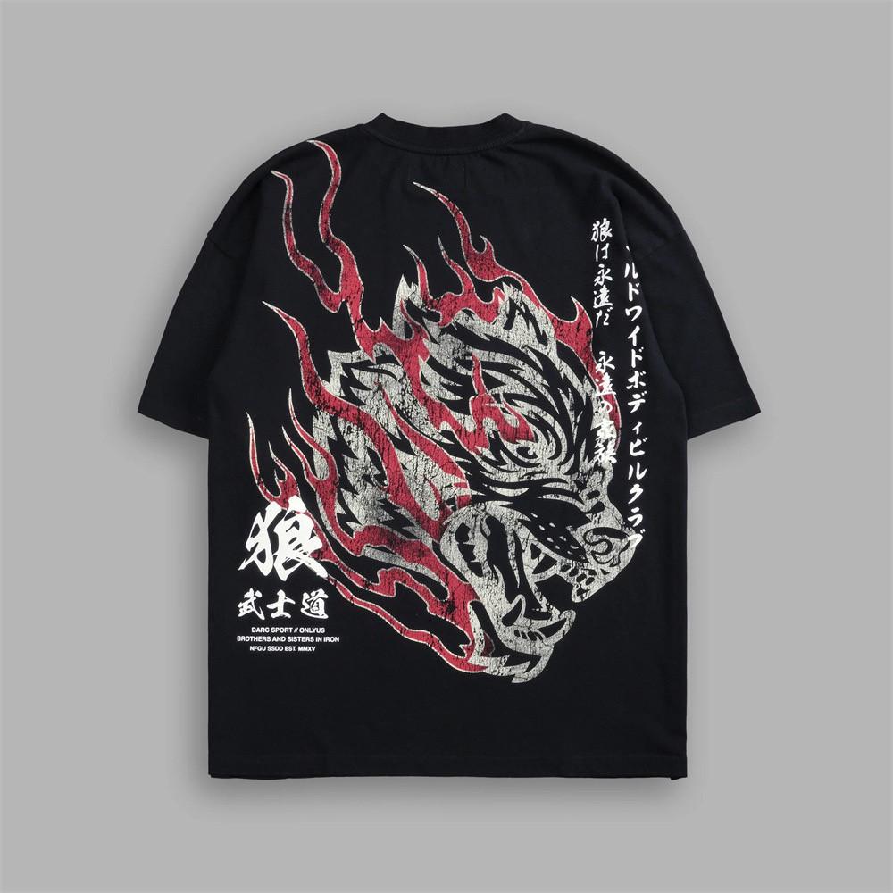 New DARCSPORT Wolf Head Bushido Short Sleeve Men's and Women's Oversized Yk2 American Sports and Leisure Loose Printed Cotton T-shirt