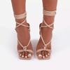 Sandals Women's High Heels 2026 Summer Square Head Roman Lace Large Fashion High Heels Women