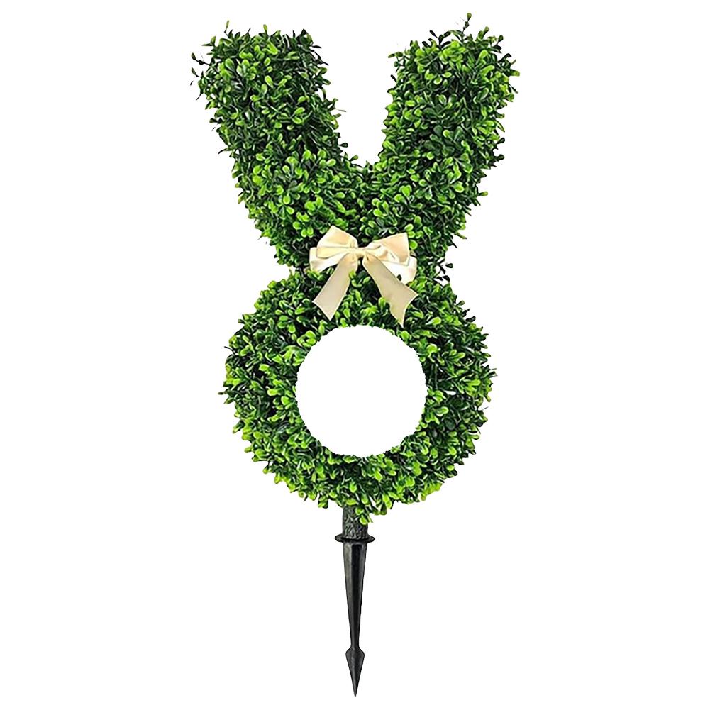 Easter Rabbit Bonsai Artificial Boxwood Bow Decoration Green Plant with Bow Tie Rabbit Shaped Topiary Trees for Outdoor Indoor