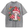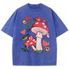 Beautiful Mushrooms Flower Strawberries Printed Washed T-Shirt Women Loose Cotton T Shirts Trendy Y2K Short Sleeve Top