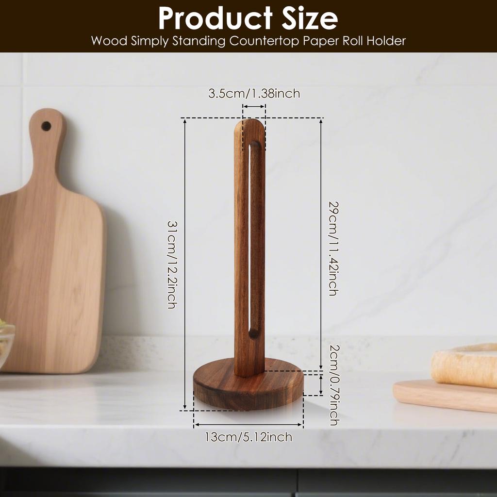 Wooden Paper Towel Holder Standing Kitchen Paper Roll Holder with Non Slip Foam Pad Bathroom Countertop Roll Paper Storage Rack