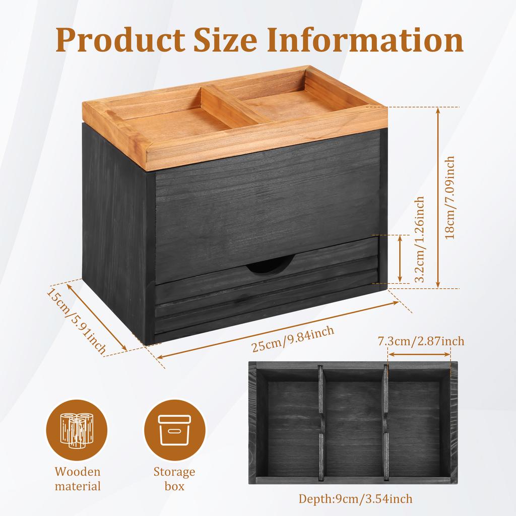 Bathroom Storage Box Wooden Tampon Box with Lid and Drawer 3 Compartment Feminine Product Organizer for Bathroom Countertops