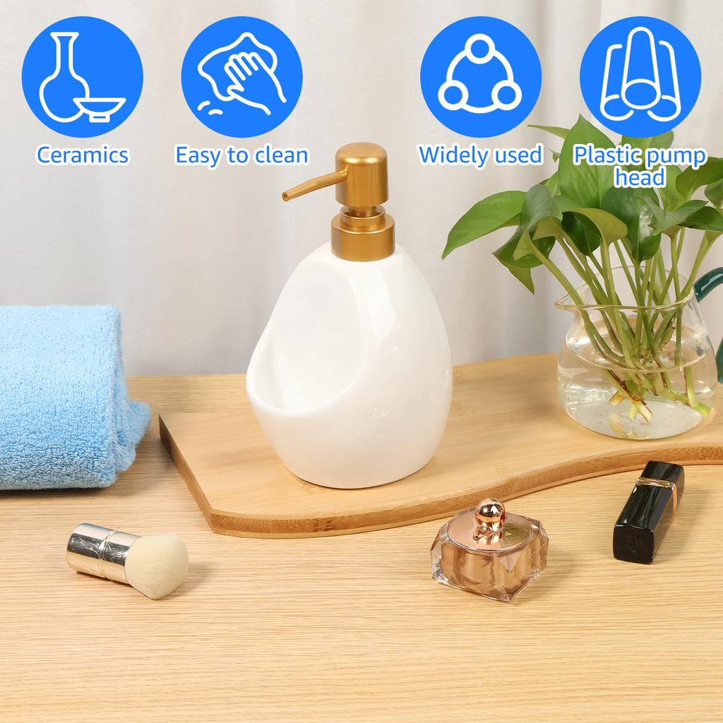 Keramický dávkovač mýdla s držákem na houbičku Snadno čistitelný Tlačná pumpa Dávkovač pěnového mýdla na ruce Stlačovací láhev s pumpou na mýdlo pro domácnost