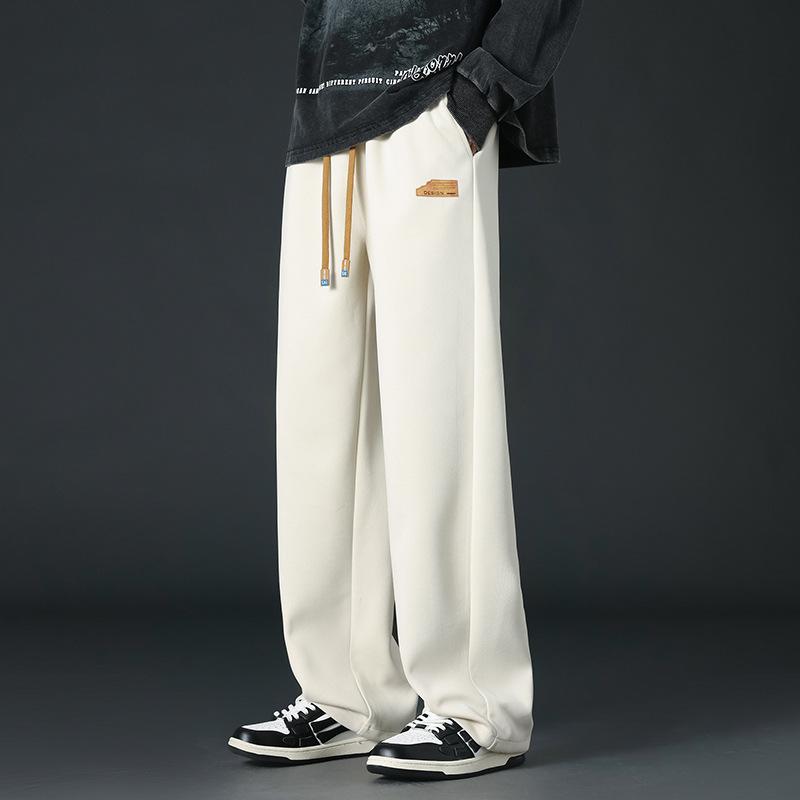Men's Beige Wide Leg Drawstring Sweatpants - Oversized Casual Streetwear Baggy Trousers Pockets