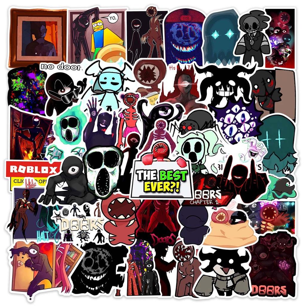 Samolepka - „Doors Roblox Figure“ zve všechny fanoušky Blox a hráče! Tento zajímavý balíček samolepek obsahuje různé symboly, slogany a zajímavé postavičky, jako například samolepku Roblox!