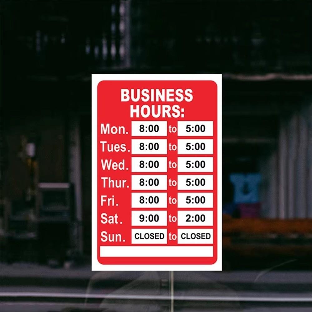 Self-Adhesive Business Hours Sticker Waterproof Open Close Time Sign Glass Door Application