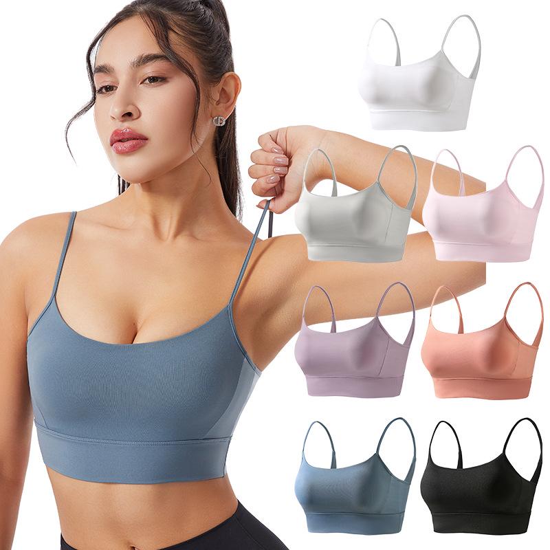 Women's Wireless Strappy Sports Bra - Seamless Shockproof Design for Running & Fitness