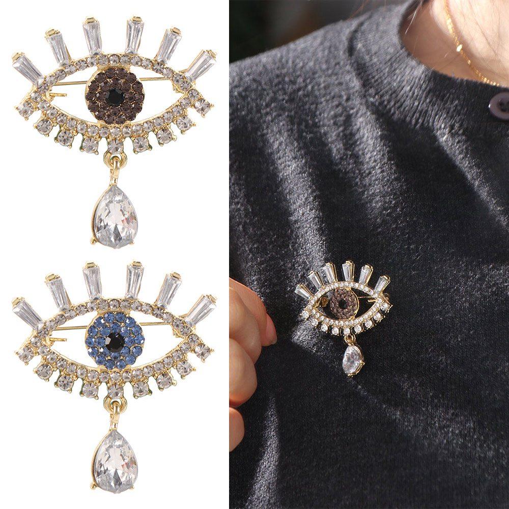 Hollow Out Devil Eye Brooch Pin Crystal Pendant Rhinestone Eye Brooches Clothes Accessories