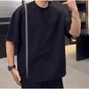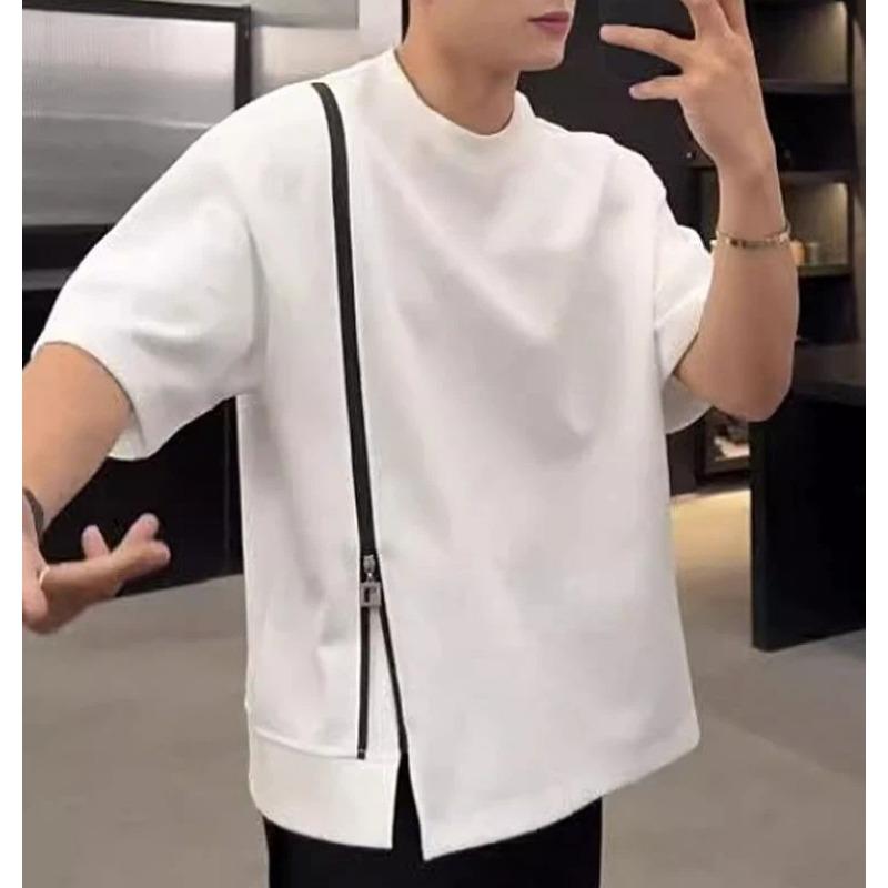 Men's Casual White Crew Neck Side Zipper Loose Fit Short Sleeve