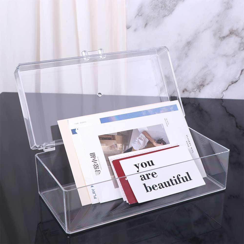 Acrylic Photo Card Storage Box Large Capacity Make Up Organizer Container Case with Lid Desk
