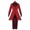 Nádherná cosplay sada kostýmu Alastora z Hazbin Hotelu s živým červeno-černým designem
