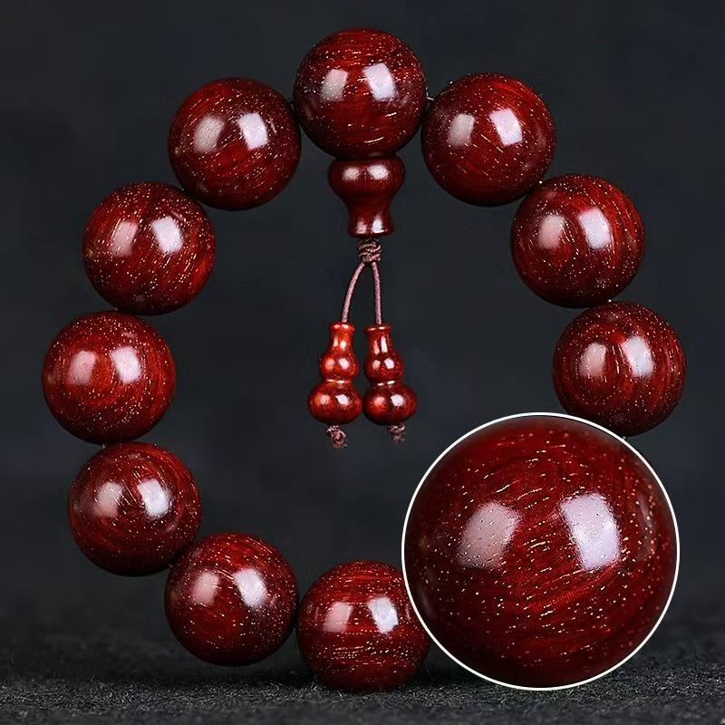 Unisex African Rosewood High-Density Gold Star Beads Bracelet - Indian Small Leaf Collectible Buddha Prayer Bracelet