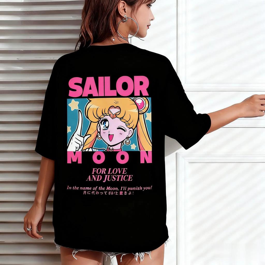 Sailor Moon Classic Quote Print T-Shirt | "For Love and Justice" Anime Tee | Unisex Oversized Cotton Short Sleeve Top | Y2K Retro Streetwear