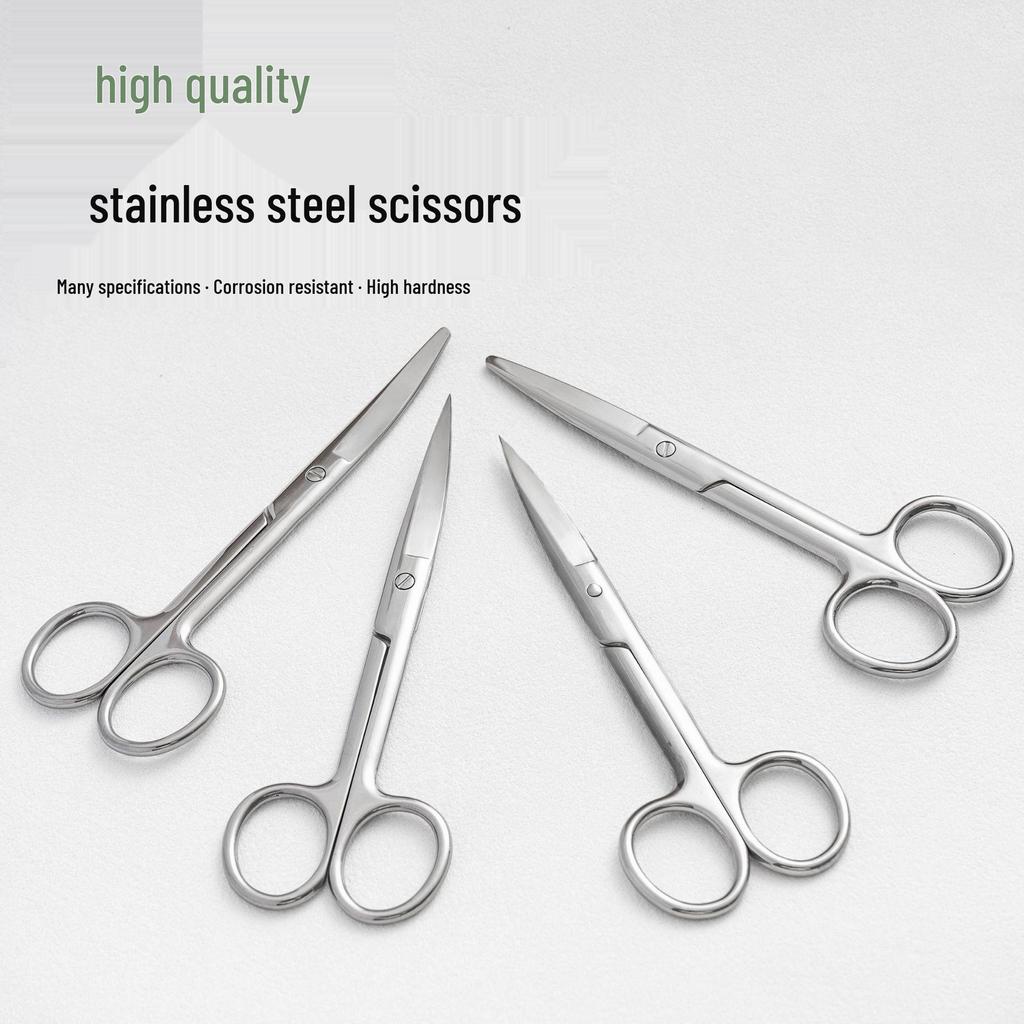 14cm Stainless Steel Curved & Straight Thickened Scissors for Lab, Beauty, Suture, and Gauze