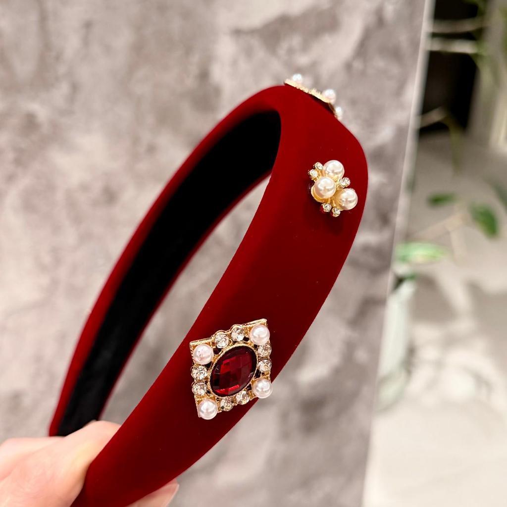 New Year Limited: Red Velvet Pearl Headband - Slimming, Stylish High Skull Top for Women