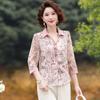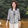 Women's Summer 3/4-Sleeve Youthful Chinese-Style Plus Size Floral Print Shirt: Relaxed-Fit, Elegant Top for Middle-Aged Moms